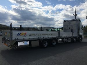 当社では初めての導入となる平ボディー車でございます。